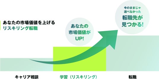 通常の転職活動ではこれまで培ってきた職歴やスキルをもとに転職先を探すため、現状の自分で選択可能な業界や職種への転職に限られてしまいがちです。リスキリング転職ではこれまで培ってきた職歴やスキル、そしてパーソナリティや価値観にプラスして最適なリスキリング(学習)を行うことにより、通常の転職活動では選択肢になかった新しいキャリアを選択することが可能になります。