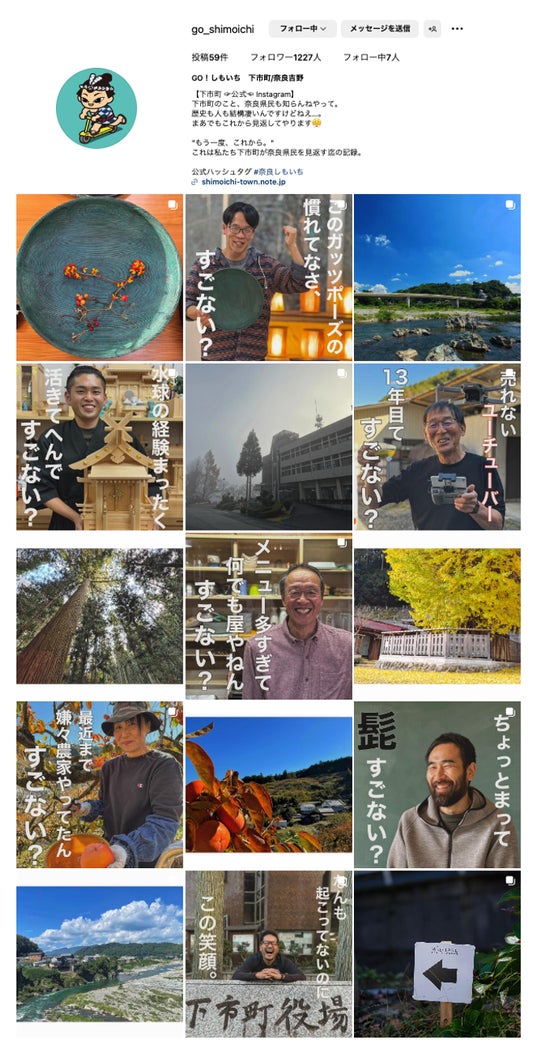 下市町役場の最年少職員「職員S」が、フォトグラファーから写真撮影方法を学び、撮影から人物インタビュー、テキスト作成から投稿までを一手に担う、インスタグラムをはじめました。下市町公式インスタグラム: