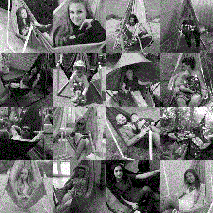 長時間座っていても体への負担が少なくハンモックならではのスウィング動作により母親の胎内にいる様な安らぎを得ることが可能。