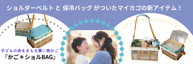 大切な人を守るだけじゃなく、便利なマイカゴにショルダーベルトと保冷バッグをプラスすることにより、さらに便利に使えるという今までになかったマイカゴの新アイテムになっています!