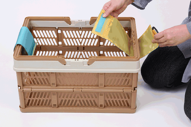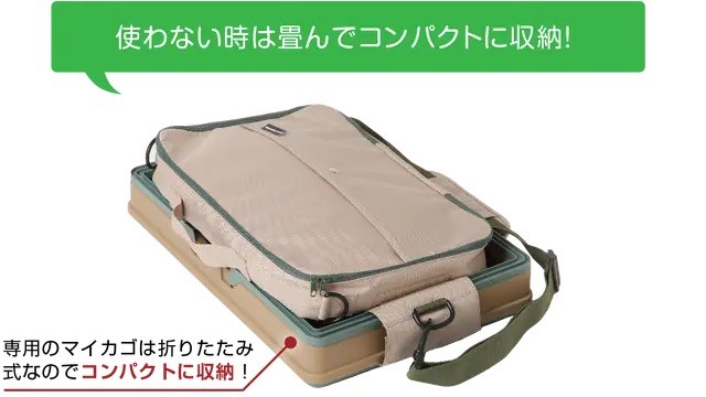 かご*ショルBAG専用カゴは折りたたみ式なので、買い物時や使用しない時には畳んでコンパクトに収納することができます。保冷バッグもつけたまま畳めるので嵩張らず、車に積んでおいたり、持ち運びにも便利です。