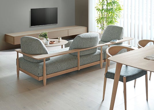 灑(セン)、白洲(シラス)シリーズ以外にも、2021年発表のダイニングセットが好評な「Rit(リット)」に、暮らしの心地よさを追求したソファとリビングテーブルが加わりました。