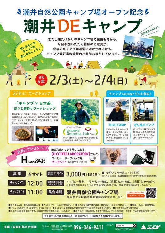 潮井自然公園キャンプ場オープン記念として、潮井DEキャンプを開催します!