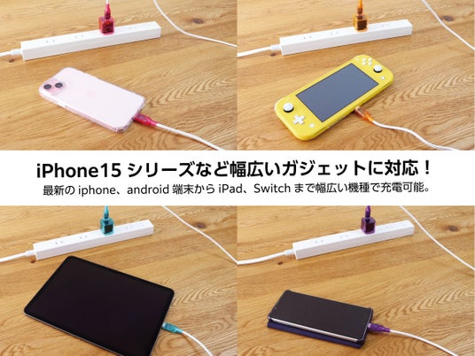 「美しく見せる」ことをコンセプトに基盤を設計。USB Power Delivery(USB PD)対応で最大100W出力に対応。iPhone15などのUSB PD充電に対応した機器をつなぐと最適な電力でより早く、安全に充電することができます。