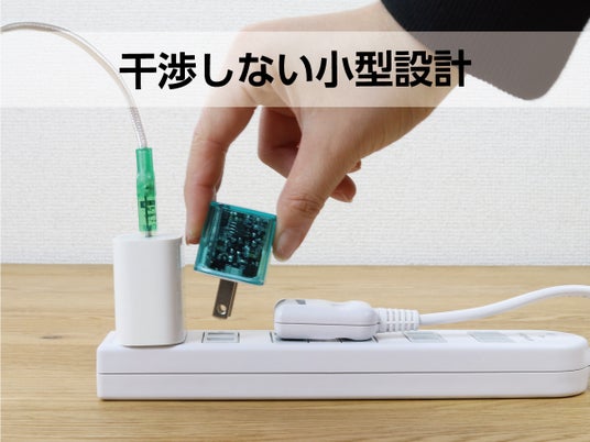 超小型設計のため、他のACアダプターや電源ケーブルなどと干渉せず省スペース化できます。