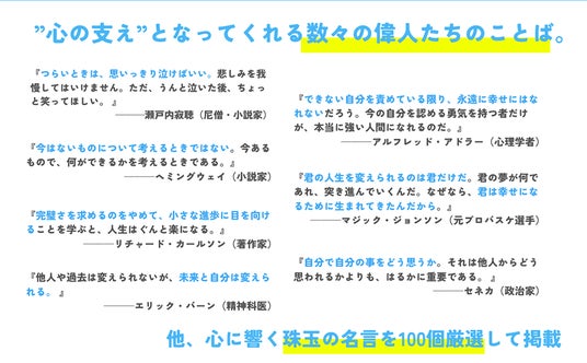 これらを手助けする、心に響く珠玉の名言を100個厳選して紹介しています。