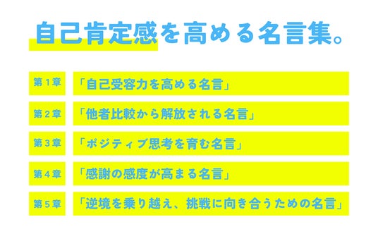 これらにより、本書籍は、単なる名言集以上のものとなり、日々の生活で自己肯定感が揺らいだときごとに繰り返し読み返したくなるような永久保存版のガイドとなります。