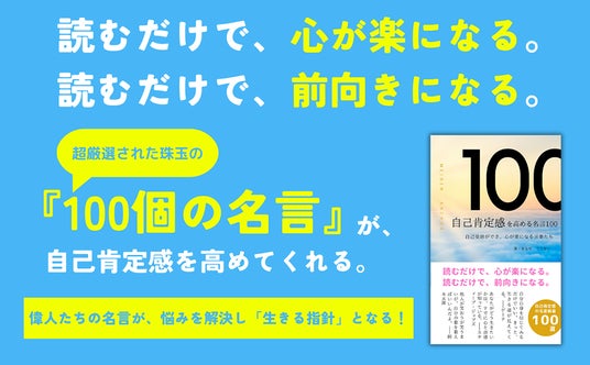 「自己肯定感を高める名言」を100個厳選。1つ1つ独自の解釈を加え、心を刺激する画像と共に名言をお届けする「自己肯定感を高める名言100」が販売開始。初出版を記念して、99円キャンペーン実施中