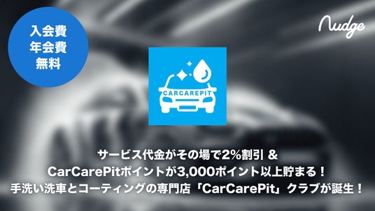 定額制手洗い洗車サービス「サブスク洗車」を展開する株式会社CarCarePit(本社:大阪府摂津市、代表取締役社長:森尾達也、以下「CarCarePit」)とナッジ株式会社(本社:東京都千代田区、代表取締役:沖田 貴史、以下「ナッジ」)は次世代型クレジットカード「Nudge(ナッジ)」において、2024年2月1日よりCarCarePitが運営する「手洗い洗車とコーティングの専門店CarCarePit」の公式クレジットカードとなる「CarCarePitクラブ」をリリースすることをお知らせいたします。