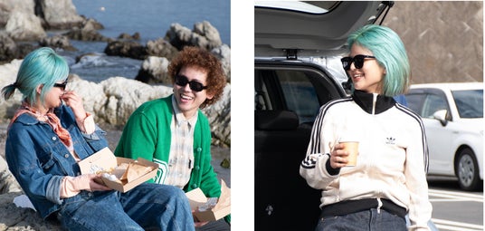 二人の私服のスタイリングを活かしつつ、新商品をフィッティングしました。