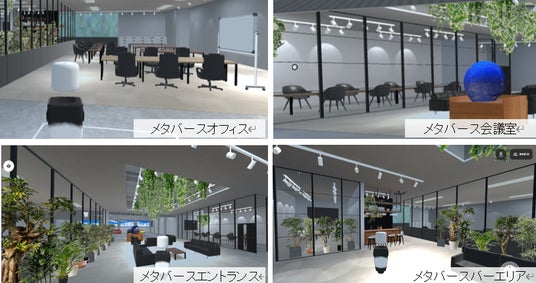 メタバースオフィスは、実際のオフィスをベースに、オフィス・会議室・バーエリア・ガレージなどを構築。リアルやテレワークで実施している採用や会議などをメタバースで行います。リモートやハイブリッドワークが普及する中での「無機質になりがちなオンライン会議」「偶発的なコミュニケーション不足」など一体感のマネジメントやコミュニケーションの課題について、メタバースを活用した新しいコミュニケーションを導入し 、メタバースがもたらす働き方の検証をスタートします。今回のメタバースオフィスは、トランスコスモスがプロジェクト全体の企画から設計、技術面での支援をしており、プラットフォームとしてWeb型メタバースの株式会社Urth(代表取締役:田中大貴)が提供するV-airを採用、空間設計はR.I.D(REO's IMPLY DESIGN)が手掛けました。