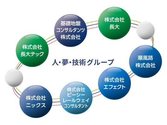 建設コンサルタント事業や情報システム関連事業を営む会社を中心に、時代の変化や社会課題に対して未来を見据えて、地盤から空、宇宙まで、高い技術力とグループ総合力で幅広い社会インフラサービスを提供します。