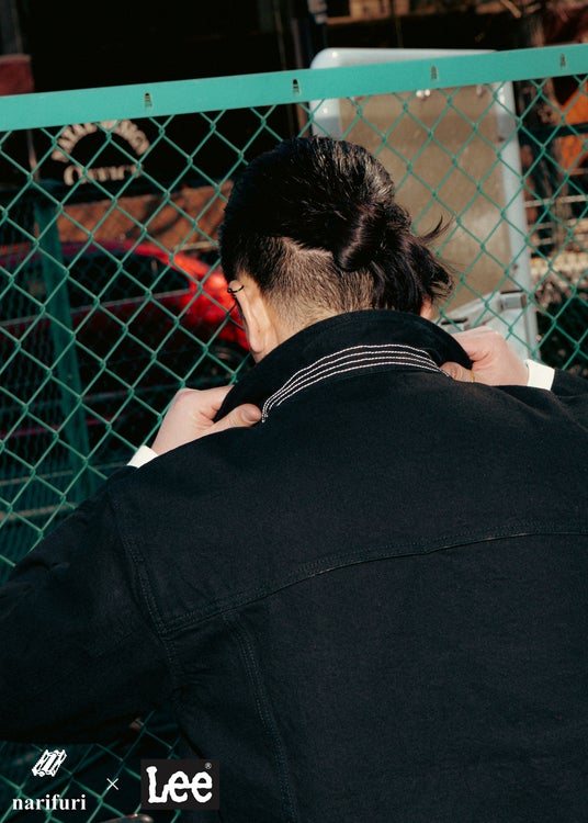 「narifuri/ナリフリ」と「Lee/リー」のコラボレーション最新作。Leeデニムジャケットの原点=Riders 101-J を、サイクリスト仕様に再解釈をしたライダースデニムジャケットを発売。