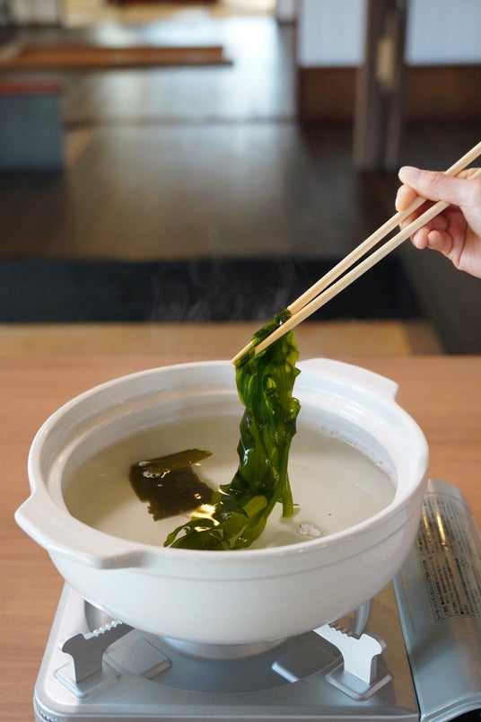 沸騰したお湯に一瞬くぐらせるだけで、ワカメはつややかなその色と食感を変え、エメラルドグリーンの美しさと独特の味わいを発揮します。この素朴な味わいは、塩やダシ、調味料を加える必要がないほどです。
