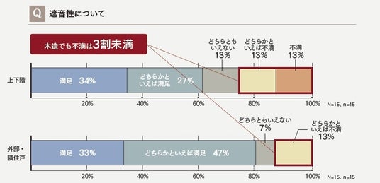 ・ 木造のネックとされる遮音性も、高評価が過半で、低評価は3割未満