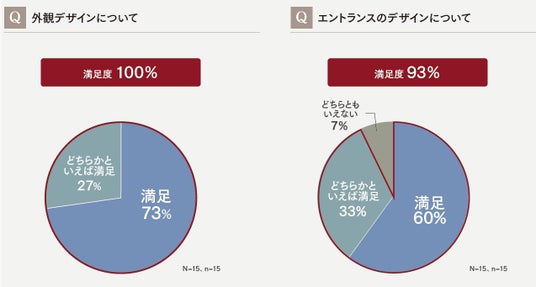 ・ 外観デザインは100%、エントランスのデザインは93%が高評価