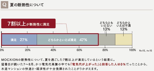 今回の調査は、2023年6月16日から入居開始となった本建物において、ひと夏の住み心地をお聞きする目的で、2023年10月13日~31日の期間にアンケートを実施し、全15世帯から得られた結果です。