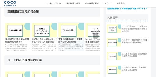 ココキャリアでは、可能な限りすべての社会課題に取り組む企業について、厳選して掲載することを目指します。