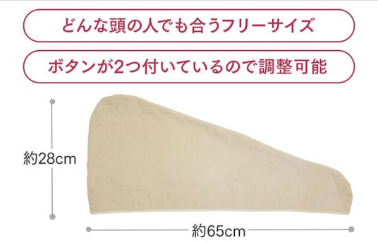 ヘアドライタオルを20分着けることで髪の水分を吸収してくれるので、ドライヤー時間が大幅に短縮されます。