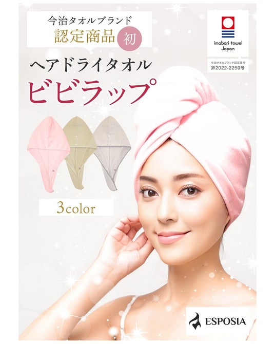"日々の暮らしが豊かになるための商品"を製作しているESPOSIAが、今治タオルブランド認定のヘアドライタオル『ビビラップ』の販売1周年を記念して大特価販売を行います!