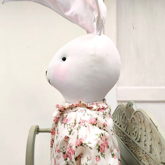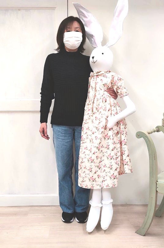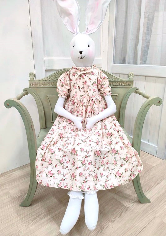 バラのプリントワンピースを着た大きなうさぎちゃん