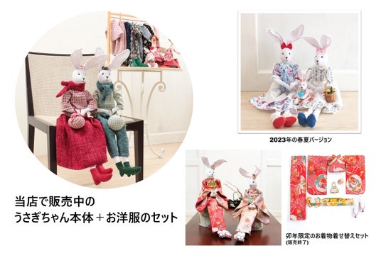 株式会社クレイブが運営するインテリアショップ「ami-brugge アミブルージュ」で販売されているぬいぐるみです。従来型は着せ替えが出来る仕様となっており、当店ではうさぎちゃん専用のトップスやスカート、バッグや帽子など可愛らしいミニチュアアイテムを取り揃えております。