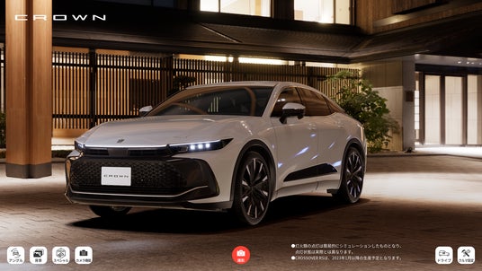 「THE CROWN愛知高辻」では、クラウン全モデルの展示車*を常設いたします。展示車で確認することのできないボディカラーやエアロパーツを装着した際のイメージなどは、3DCGのリアルタイムレンダリング技術を活用し、実写を見ているような体験を提供する「Toyota Image Creator(TIC)」を使用し、店内の大型モニターでご確認いただけます。そのほか、歴代のクラウンの名車やここでしか出会ないコンセプトカーなど、特別な展示イベントも予定しております。