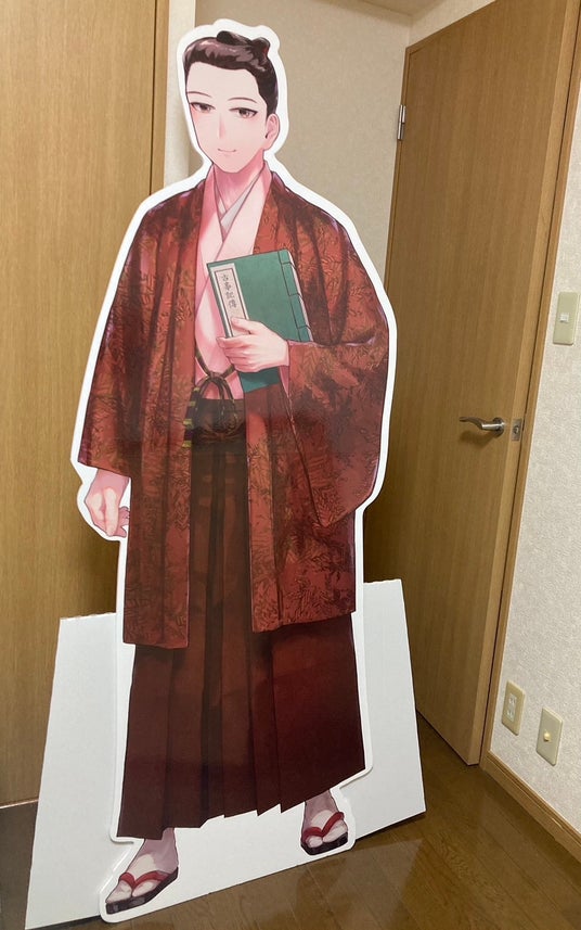 「宣長さん」の等身大ポップ。国学者・本居宣長は高身長だったとの記録を頼りに、約170センチと江戸時代としては高身長のポップを制作