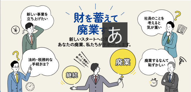 新しいスタートへの第一歩。あなたの廃業、私たちがサポートします。