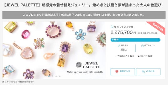 株式会社ラトシエが展開するジュエリーブランド「JEWEL PALETTE(ジュエル・パレット)」がクラウドファンディングにて先行リリースしました。