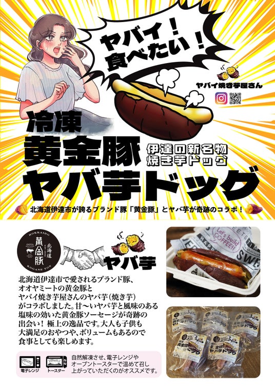 展示された冷凍ヤバ芋、冷凍黄金豚ヤバ芋ドッグ