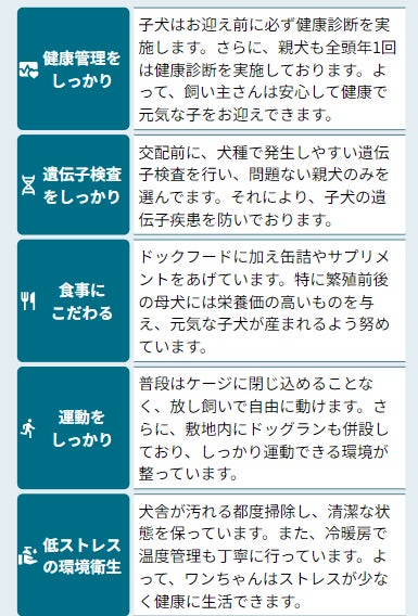 - 2.情報の透明性が高いブリーダー直販の場合、お迎えされるまで飼育者が変わらないので、ユーザーは飼育環境や子犬の特徴、子犬のルーツも正確に把握できます。