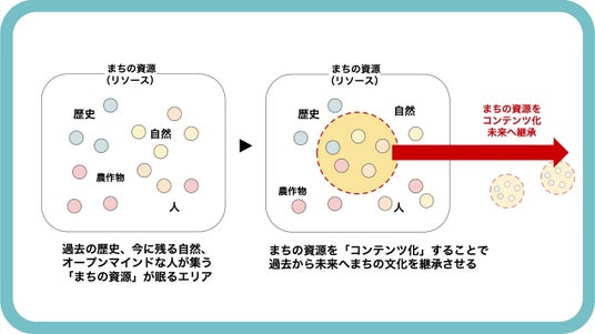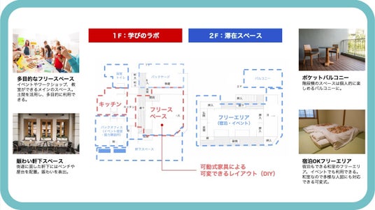そして、この「学びコンテンツ」を実施するための「学びの拠点」を作ります。「学びの拠点」はイベントスペースだけでなく、カフェや宿泊といった機能をもった施設として計画しており、まちの内外から学びたい人が集まり、滞在しながら地域の文化に触れることができます。