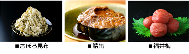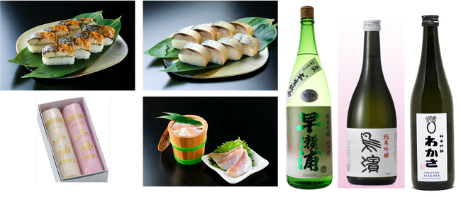 敦賀・若狭は、古くから「御食国」として塩や海産物など豊富な食材を都に運び、都の食文化を支えてきた場所です。昆布、へしこの加工品、鯖缶、福井梅など、ご当地グルメ=若狭もんを限定販売する「先取り物産展」を開催いたします。(下記は一例です)
