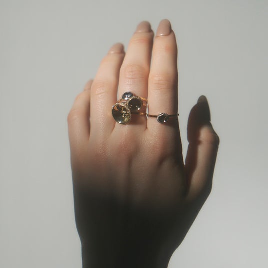 選んだコーンはピアス、ネックレスにご自身で通していただけ、その時々のシーンに応じてコーンの数を増減させたり、ピアスからネックレスへなどとアイテムを変えることができます。リングのみアームと一体になった仕様となりますが、オーダー時にリングサイズやお好みのコーンを選ぶことができ、さらに重ね付けで個性を楽めます。