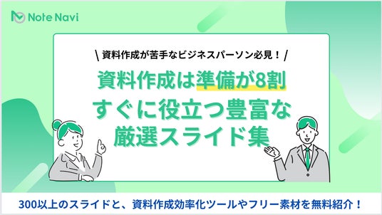 『Note Navi』のリリースと合わせて、資料作成をするビジネスパーソンにとってのお役立ちサイト「資料作成パーフェクトガイド」を無料公開しました。厳選したスタートアップ資料や、おすすめフリー素材・ツール、弊社作成のスライドテンプレートを掲載しています。