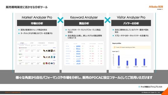 Alibaba.comの分析ツールを活用することで、様々な角度から自社パフォーマンスや市場を分析し、販売のPDCAに役立つツールとしてご活用いただけます。
