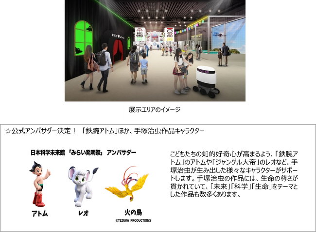 手塚治虫作品のキャラクターを案内役に、想像力を刺激するテクノロジーや、サステナブルな取組など、東京の暮らしを変える多様な発明に出会えます。アイデアを形にするワークショップなどで、こどもたちのひらめくチカラを育みます。