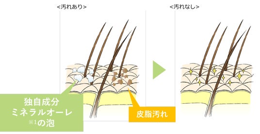 岐阜県奥美濃地方で採掘された天然鉱石を超微粒子にしたミネラル豊富な独自成分「ミネラルオーレ※1」を配合。頭皮の皮脂汚れを吸着して取り除きながらうるおいを与え、頭皮を引き締めます。