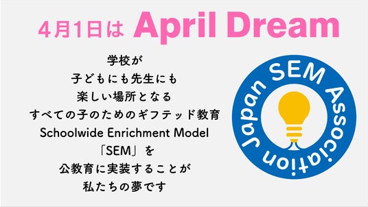 当協会は、4月1日を夢を発信する日にしようとするApril Dreamに賛同しています。このプレスリリースは「日本スクールワイド・エンリッチメント・モデル協会」の夢です。