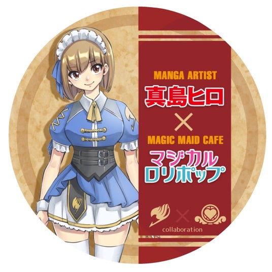 真島ヒロ先生がデザイン、監修をした世界に1つしかないオリジナルメイド服。デザインは『FAIRY TAIL』に登場するヒロイン「ルーシィ」をイメージ。青と金を基調とした色合いと刺繍されたギルドマークは『FAIRY TAIL』ファンにはたまらないデザインとなっている。