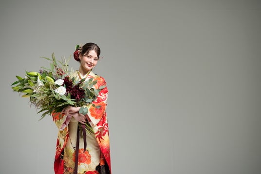 伝統的な振袖の凛とした美しさと、都会的なモダンさ、現代的で洗練された雰囲気を兼ね備えた装いはより一層魅力的に映る。