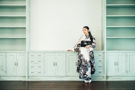 伝統的な振袖は、色や柄、デザインなどに一定のルールがあるが、モードやストリートな振袖では、それらを自由に解釈し自分だけのスタイルを確立させる。