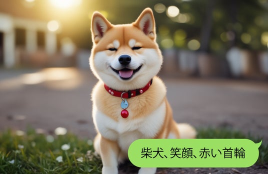 文字からモード「柴犬、笑顔、赤い首輪」文字からモード画像にしたいものを日本語で送ると、すぐに生成された画像が返信されます。このモードは無料で利用することができます。