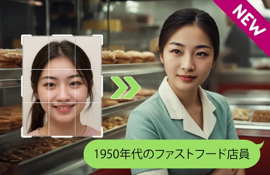 もしもモード「1950年代のファストフード店員」もしもモード「もしも私がピアニストだったら?」「もしも私が宇宙飛行士だったら?」そんな想像を、AIがリアルな画像で実現します。