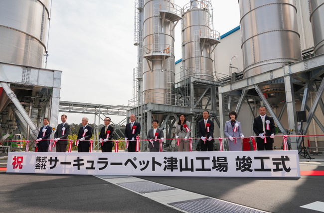 株式会社サーキュラーペット(本社:岡山県津山市、代表取締役:喜田知克)は使用済みPETボトルを原料に、PETボトルの原料へ再資源化するサーキュラー型のビジネスモデルを実現することを目的として、同社津山工場を建設し、本日竣工式を行いました。