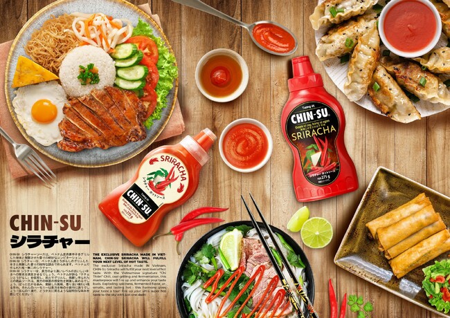 ベトナム市場で最も人気の高いチンスチリソースシリーズはアメリカのAmazon販売ランキングでもトップ10入りしたこともある人気商品です。今回の展示会では、唐辛子の辛さで新しく味付けした「チンス・シラチャーソース」を紹介しました。シラチャーは世界で2番目に人気のチリソースで、唐辛子の辛さが必要な料理によく使われます。「チンス・シラチャーソース」は厳選した唐辛子を15分間炭火で焼き、12か月間発酵させて完熟した赤唐辛子と組み合わせて作っています。餃子や、うどん、天ぷら、スパイシーサーモンタルタル、スパイシーバター貝類などと一緒にお楽しみいただけます。
