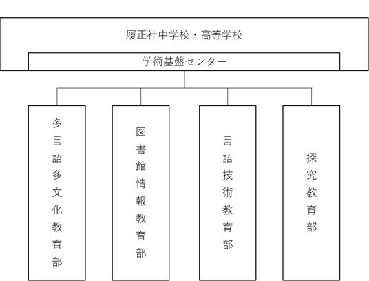 多言語多文化教育部、図書館情報教育部、言語技術教育部、探究教育部の4部署を設置し、互いを関連させながら教育効果を最大化する