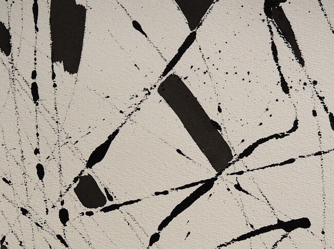 《墨-混乱秩序-天地人》展には、黄川心氏の初公開作品「天矩圓」、「地幾方」、「人畸角」も展示され、墨黒の世界が描かれます。墨の何層にも渡る濃淡、黒と白の配合により黄川心氏は線と墨色で世界の広がりと複雑さを表現しています。彼女は線を人生で進む足跡に例え、それは計画されたものでありながらも、制御できないものであり、追求、脱線、滑走する度に生命に解釈と考察の機会をもたらすと表現しています。
