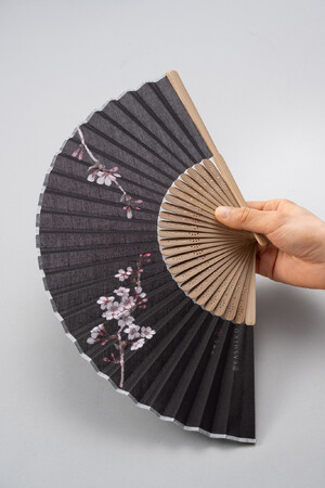 <扇子>サイズ:約210mm 扇面:ポリエステルコットン 扇骨:竹